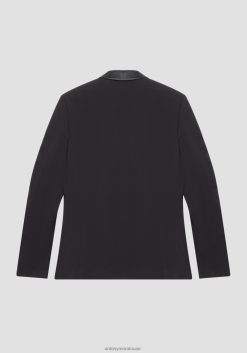 ملابس Antony Morato سترة جودي ذات قصة ضيقة من القماش المطاطي مع تفاصيل متباينة من الجلد الصناعي أسود رجال JVZ2242