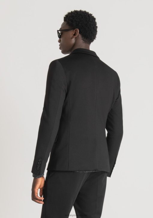 ملابس Antony Morato سترة Ashe فائقة النحافة مصنوعة من نسيج مزيج الفيسكوز المطاطي بلون موحد أسود رجال JVZ2230
