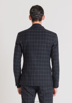 ملابس Antony Morato سترة Bonnie ذات قصة ضيقة من القماش المطاطي مع نقش المربعات حبر أزرق رجال JVZ2231