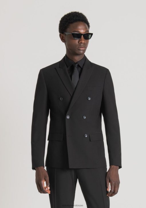 ملابس Antony Morato سترة Kate ذات قصة ضيقة مزدوجة الصدر مصنوعة من مزيج الفيسكوز المرن أسود رجال JVZ2239