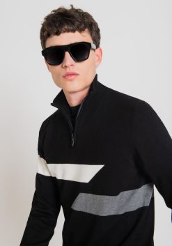 ملابس Antony Morato سترة بوني بقصة ضيقة مصنوعة من مزيج الفيسكوز المطاطي أسود رجال JVZ2235