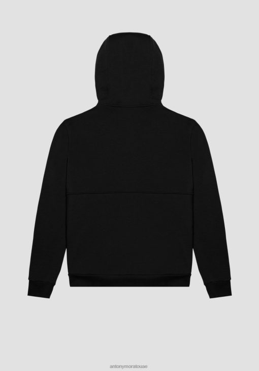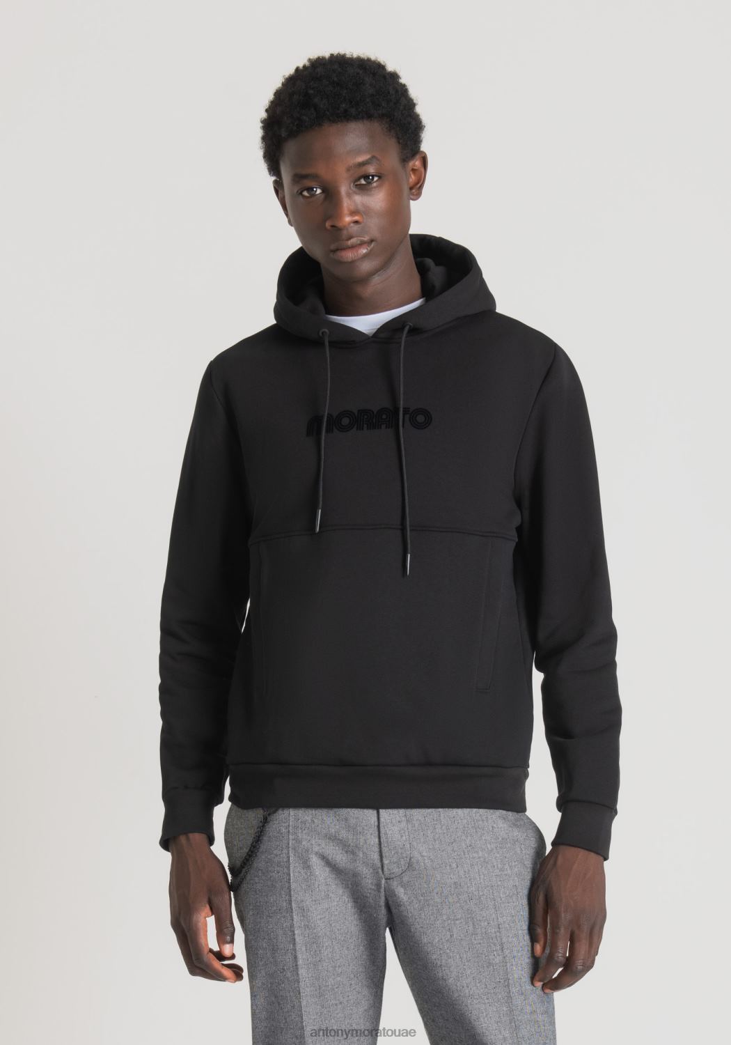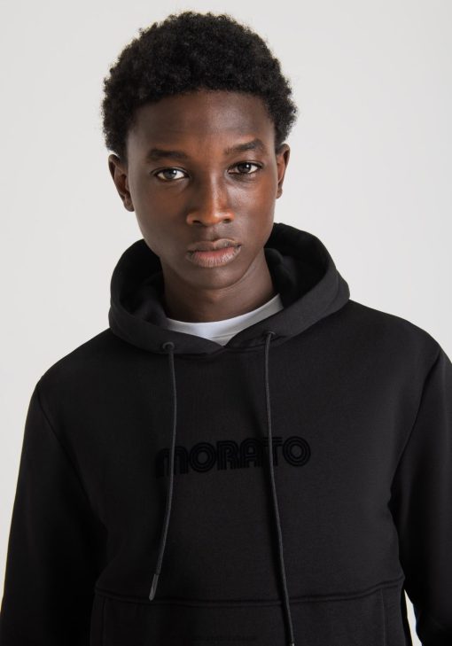 ملابس Antony Morato سويت شيرت بقصة عادية من مزيج القطن مع غطاء رأس وجيب الكنغر أسود رجال JVZ2270