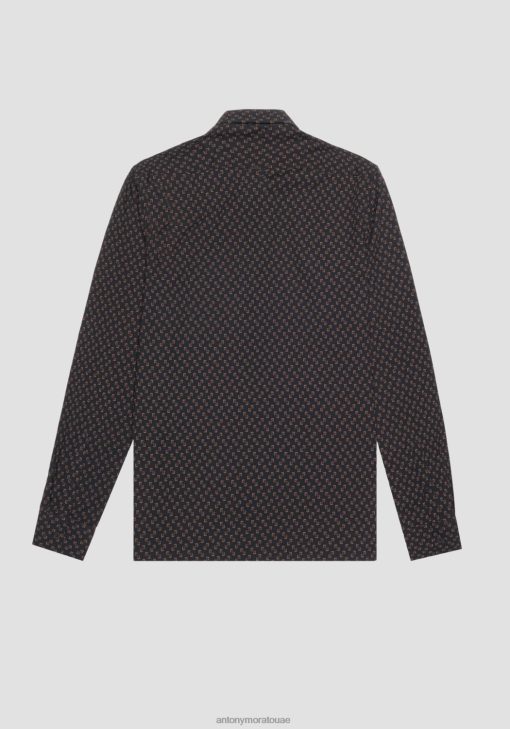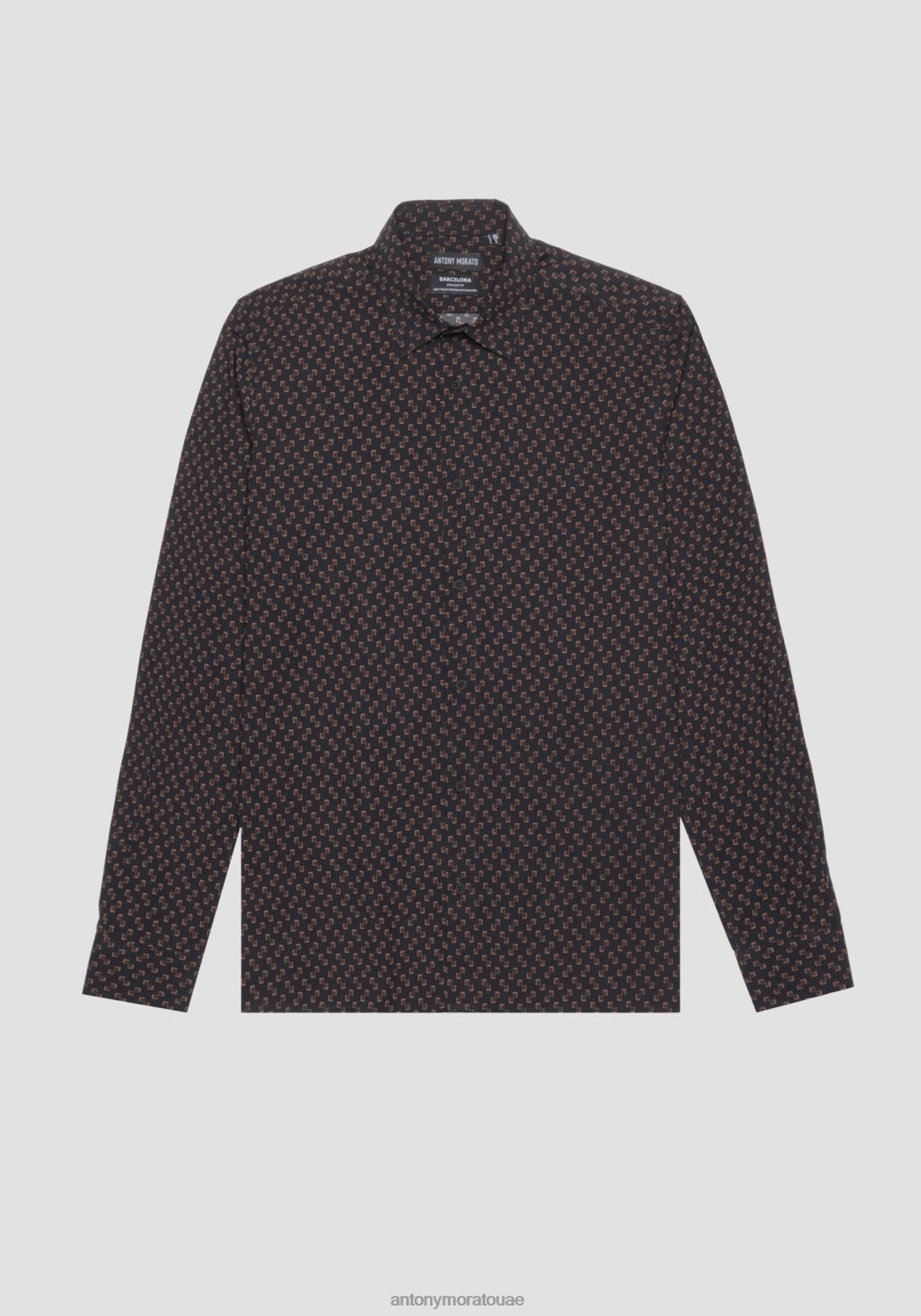 ملابس Antony Morato قميص برشلونة ذو قصة مستقيمة من نسيج مطبوع من مزيج القطن أسود رجال JVZ22128