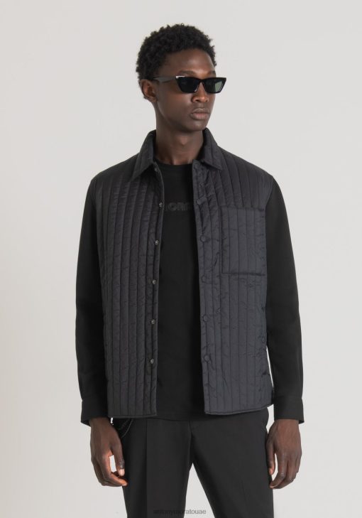 ملابس Antony Morato قميص بقصة عادية مصنوع من النايلون المبطن والقماش بلون متباين أسود رجال JVZ22124