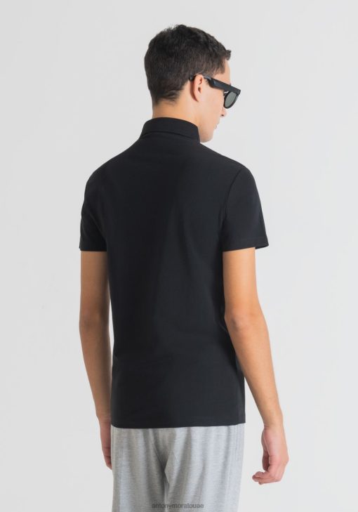 ملابس Antony Morato قميص بولو فائق النحافة مصنوع من القطن المطاطي مع رقعة الشعار أسود رجال JVZ22179