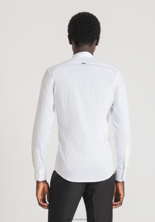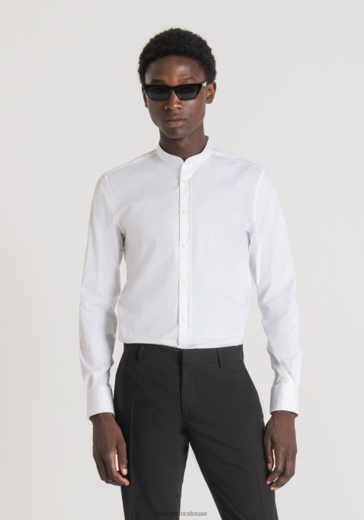 ملابس Antony Morato قميص من القطن بياقة الماندرين أبيض رجال JVZ22136