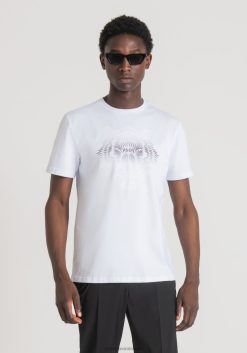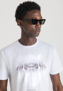 ملابس Antony Morato تيشيرت بقصة ضيقة من القطن مع طبعة نمر مظللة أبيض رجال JVZ22161