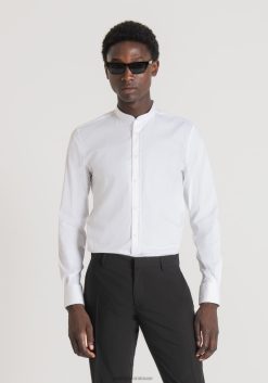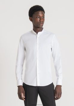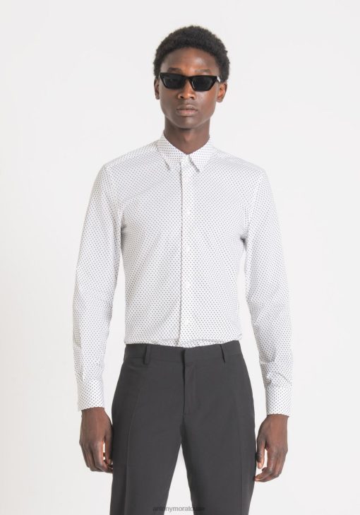 ملابس Antony Morato قميص نابولي من القطن الناعم الملمس بقصة ضيقة مع نسج دقيق أبيض رجال JVZ22119