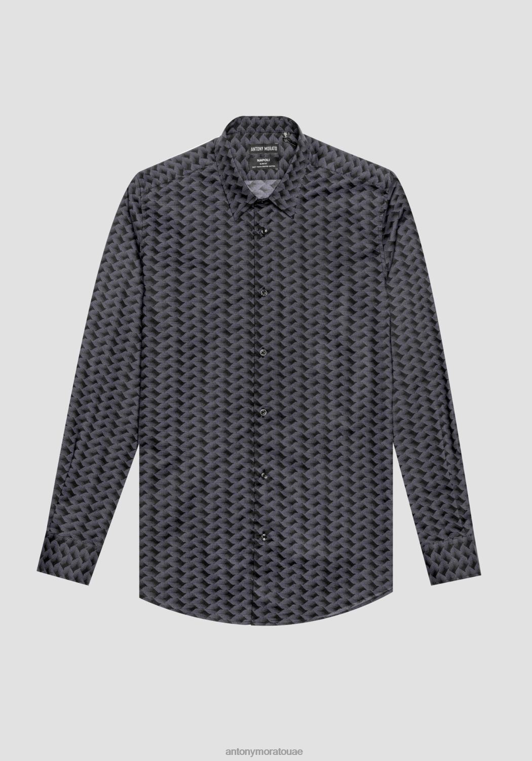 ملابس Antony Morato قميص برشلونة ذو قصة مستقيمة من نسيج مطبوع من مزيج القطن أسود رجال JVZ22128