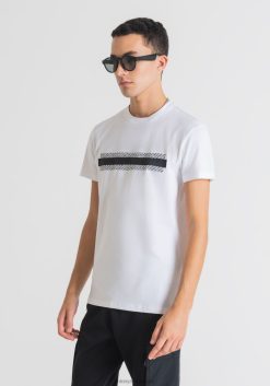 ملابس Antony Morato تيشيرت بقصة ضيقة للغاية من القطن المطاطي مع شعار منقوش أبيض رجال JVZ22191