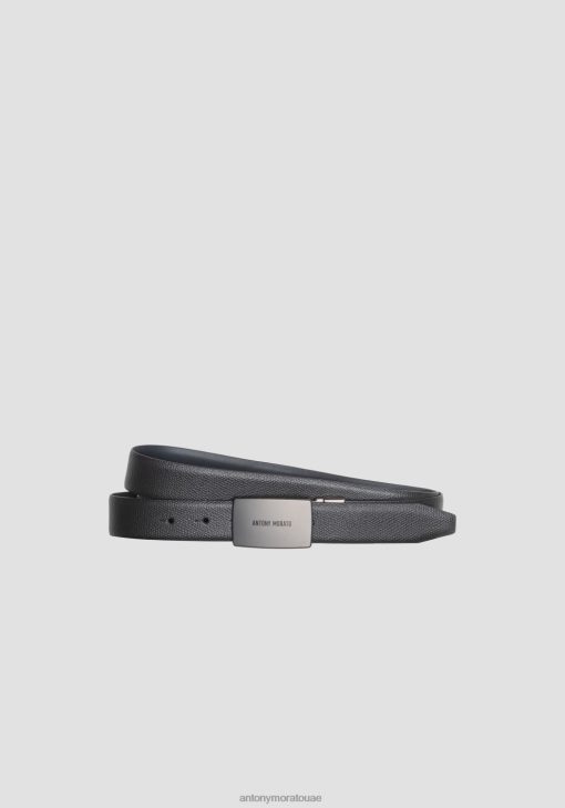 يتميز هذا الحزام الجلدي الأنيق والراقي، ولكن أيضًا ذو الوجهين، بطباعة متوسطة الحبيبات على أحد الجانبين ولمسة نهائية ناعمة على الجانب الآخر. يتميز بإبزيم معدني وحلقة حزام مع تفاصيل شعار منقوشة. يبلغ عرضه 30 ملم وطوله قابل للتعديل، مما يجعله ملائمًا بسهولة ومثاليًا لأي مناسبة.